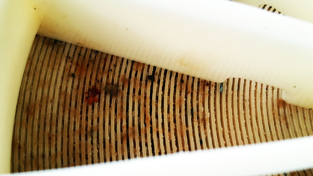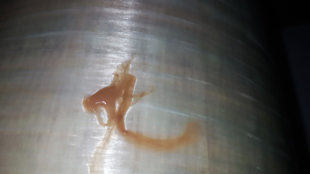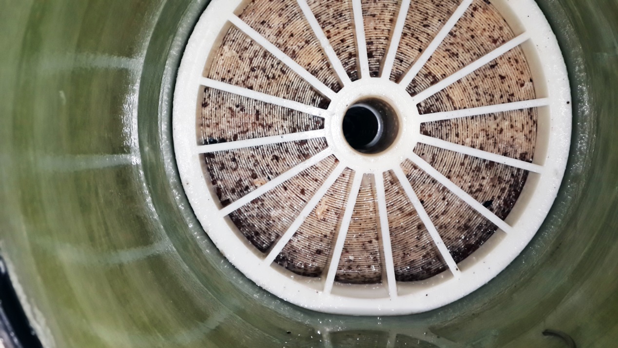 就本項(xiàng)目而言,在反滲透膜拆卸過程中未能在滲透二段出口部分膜元件中發(fā)現(xiàn)明顯的白色粉末狀的物質(zhì);一段進(jìn)口段部分膜元件有明顯的異味(腥臭味),膜殼內(nèi)壁及反滲透膜上有黏液或鼻涕狀物質(zhì);其次在一二段膜的進(jìn)水端發(fā)現(xiàn)大量的細(xì)砂、焊渣、等較大的固體顆粒物,另外明顯感覺到一段進(jìn)水端的第一支膜重量明顯超重。