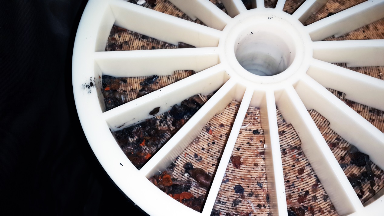 圖一 清洗前反滲透膜端面上的固體顆粒和黃色粘稠物